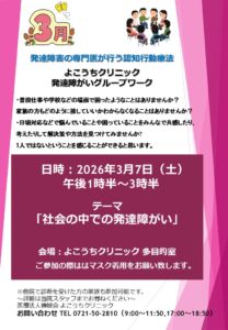 ※ポスターの下に令和8年度の発達障がいグループワークの日程を記載しています。